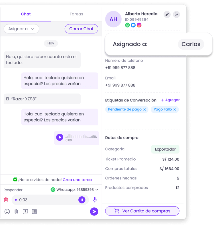 Asigna conversaciones a los colaboradores adecuados para garantizar una atención al cliente eficiente y personalizada.